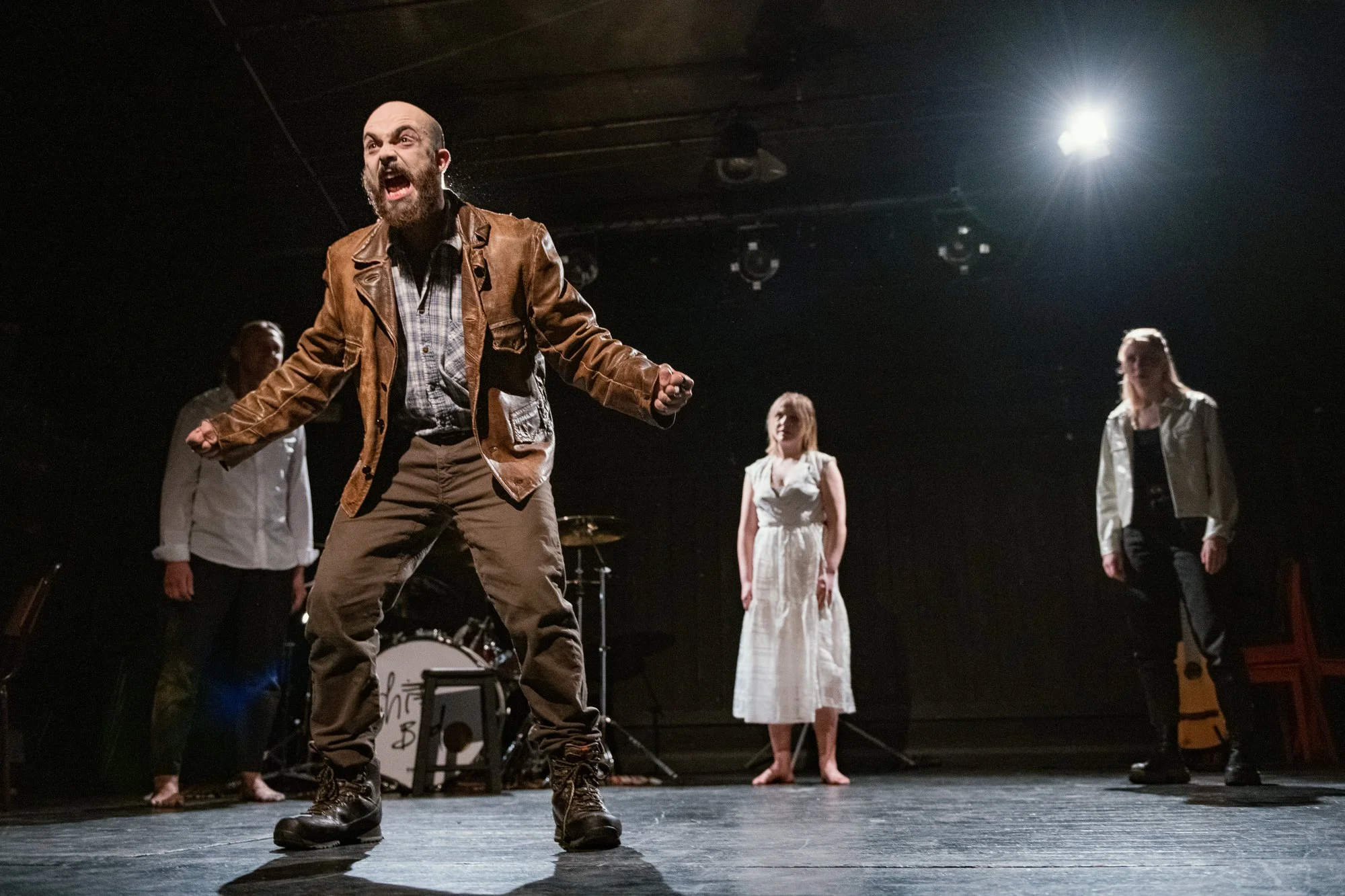 Aske av stein bobler over av litterære kvaliteter. Men det låses ikke scenisk av den grunn. For hvilket rom er det egentlig de fire fortellerne befinner seg i? Hvorfor forteller de, og til hvem? Hva slags relasjoner har de til hverandre i dette rommet? Alt dette får vi ikke den minste antydning om. Med et så billedlig litterært rom, er utfordringen å skape et interessant scenisk språk, uten å krympe de poetiske og narrative kikkehullene. For det er gjennom disse kikkehullene at menneskeheten kommer til syne som noe større og mer håpefullt enn en ansamling bygdedyr